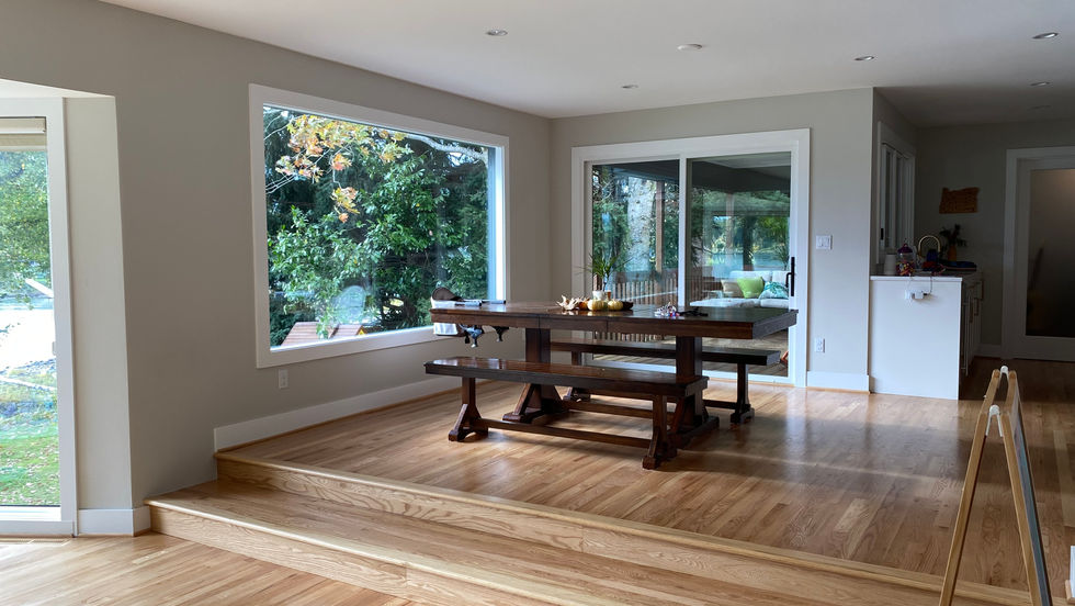 Walta Vista was a large project, turning this 70's mish-mashed asbestos covered house into an open airy home with the beautiful view as our focal point. Walnut island and inset pantry with pocket doors for coffee and bagels in the morning, and a large window to pass drinks to your friends on the back porch.